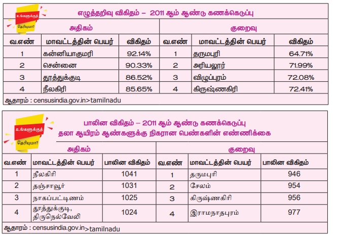 வருவாய் மாவட்டங்களுடன் தொடர்புடையவை. அதே போல் கல்வியறிவு குறைந்த விகிதம் உள்ள மாவட்டங்கள்