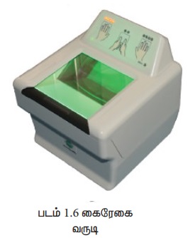 (4) கைரேகை வருடி (Fingerprint Scanner): கைரேகை வருடி என்பது கைரேகையை உணர்ந்து கணிப்பொறிக்குப் பாதுகாப்பு வழங்கிடும் ஒரு கருவி, அதன் செயல்திறன், கைரேகை உயிரளவையியல் (biometric) தொழில்நுட்பத்தின் அடிப்படையில் இயங்கும் தன்மை கொண்டது. நினைவில் வைத்துக்கொள்ள முடியாத, கடினமான மற்றும் மோசடிக்கு வழிவகுக்கக் கூடிய கடவுச்சொல்லுக்கு பதிலாக மிகவும் பாதுகாப்பானது மற்றும் வசதியானது கைரேகை படிப்பான் (Finger print Reader) / வருடி (Scanner) ஆகும்.