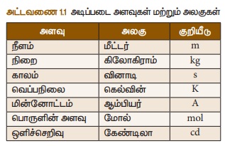 அறிந்திருக்கிறீர்கள். எனவே, தற்போது மற்ற அடிப்படை அளவுகளான வெப்பநிலை, மின்னோட்டம்,