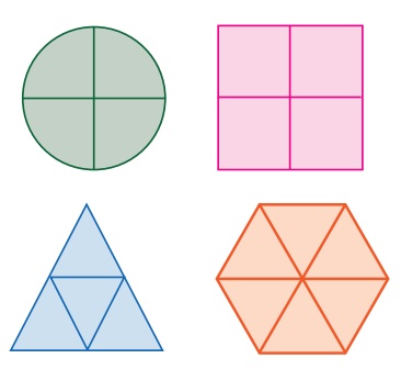 பின்வரும் வடிவங்கள் சம பகுதிகளாகப் பிரிக்கப்பட்டுள்ளன.