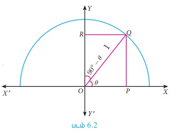 மேலும், RQ = sin(90° − θ)