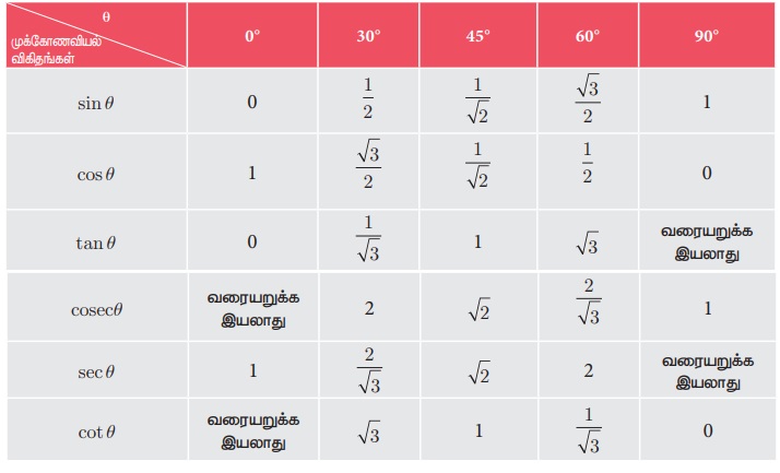 3. θ -ன் மதிப்பு 0° -லிருந்து 90° வரை அதிகரிக்கிறது எனில், ஆறு முக்கோணவியல் விகிதங்களில் எவை வரையறுக்கப்படாத மதிப்புகளைப் பெற்றிருக்கும்?