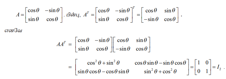 இதேபோல் ATA = I2. எனவே AAT = ATA = I2 ⇒ A ஆனது செங்குத்து அணியாகும்.