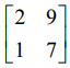 | A| = (2) (7) − (9) (1) = 14 − 9 = 5. எனவே, A−1 =