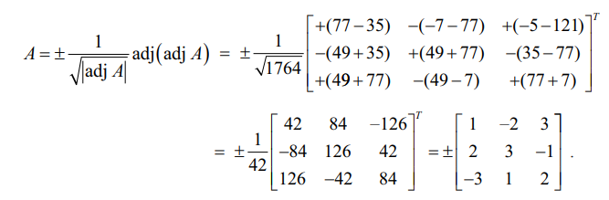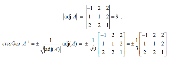 A (adj A) = (adj A) A = |A| I3 என்பது சரிபார்க்கப்பட்டது.