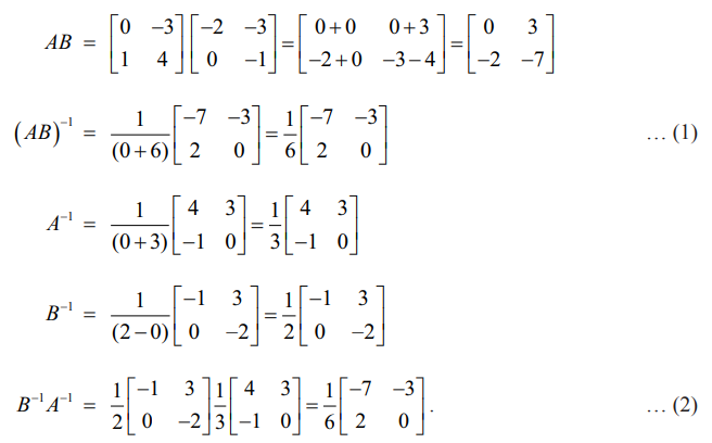 எனக்கொண்டு (AB)−1 = B−1A−1 என்பதைச் சரிபார்க்க.