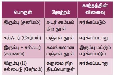 கலவைகள் மற்றும் சேர்மங்களுக்கிடையான வேறுபாட்டினை கீழ்கண்ட செயல்பாட்டின் மூலமாக அறியலாம்.