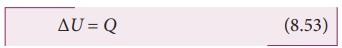 இதிலிருந்து நாம் அறிவது என்னவென்றால் அமைப்பிற்குக் கொடுக்கப்படும் வெப்பம் அக ஆற்றலை மட்டுமே அதிகரிக்கும். இதன் விளைவாக வெப்பநிலை உயரும் மேலும் அழுத்தமும் அதிகரிக்கும். இது படம் 8.38 இல் காட்டப்பட்டுள்ளது.
