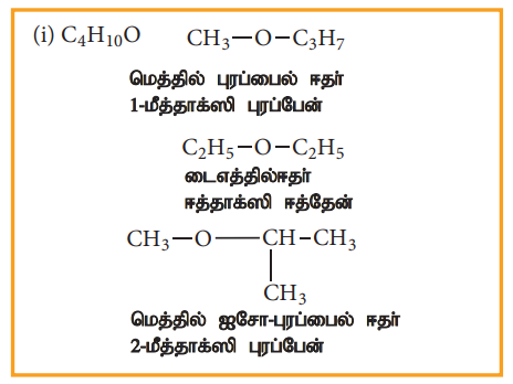 4. C4H10O என்ற மூலக்கூறு வாய்ப்பாட்டினைப் பெற்றுள்ள சாத்தியமான மாற்றியங்கள் அனைத்தையும் எழுதுக அவைகளில் காணப்படும் மாற்றியங்களைக் கண்டறிக.