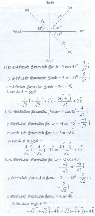 20. x அச்சினை கிழக்குத் திசையாகவும் y அச்சினை. வடக்குத்திசையாகவும் மேலும் z அச்சினை செங்குத்தான மேல்நோக்கிய திசையாகவும் கருதி கீழ்க்கண்டவற்றை வெக்டர் முறையில் குறிப்பிடுக.