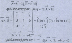 வெக்டர்களை பக்கங்களாகக் கொண்ட முக்கோணத்தின் பரப்பினைக் கணக்கிடுக.
