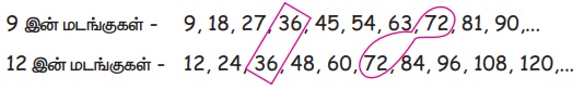 9, 12 இக்கும் உள்ள பொது மடங்குகளைக் காண்க.