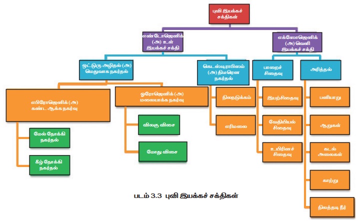 புவியின் மேற்பரப்பானது உள் மற்றும் வெளி இயக்க சக்திகளால்