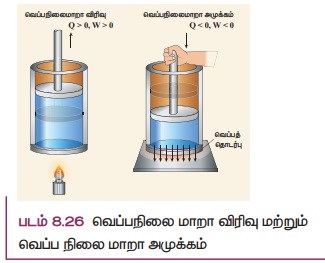 • வாயுவின் மீது செய்யப்பட்ட வேலை எதிர்க்குறியாகும்.
