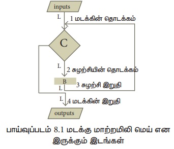 2. மடக்கின் உடற்பகுதியானது, மடக்கின் இறுதியை நோக்கி நகரும் வகையில், மாறிகளின் மதிப்பை மாற்ற வேண்டும். அதே நேரத்தில் மடக்கின் மாற்றமிலியை மாறாமல் பராமரிக்க வேண்டும்.