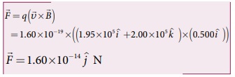 அதே நேரத்தில் அம்மின்துகள் காந்தப்புலத்தில் இயங்கும் போது, ஒரு விசையை உணர்கிறது.