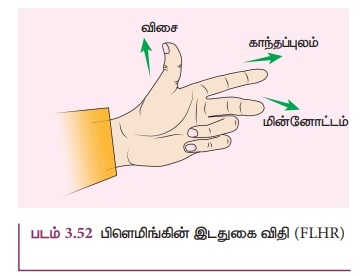 ஒன்றின் மீது செயல்படும் விசையின் திசையை படம் 3.52 இல் காட்டியுள்ளவாறு பிளெமிங்கின்