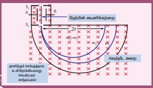 எனக் கருதுக. துகள் காந்தப்புலத்தினுள் நுழைந்த உடன், அத்துகளின் மீது, காந்தப்புலம்
