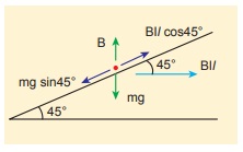 செயல்படும் விசையின் திசை B கடத்தியை நோக்கி காணப்படும். எனவே dl நீளமுள்ள சிறு கூறு