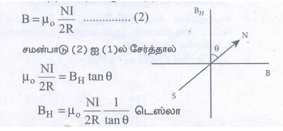 i) காந்த நடுவரைக் கோட்டில் BH = BE [I = 0°]