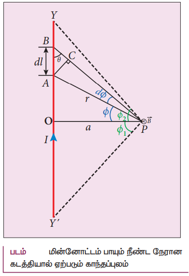 • NM என்ற நீண்ட நேரான கடத்தியில் I மின்னோட்டம் பாய்கிறது என கருதுக.