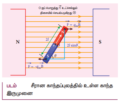 4. சீரான காந்தப்புலத்திலுள்ள காந்த ஊசி ஒன்றின் மீது செயல்படும் திருப்பு விசைக்கான கோவையைப் பெறுக.