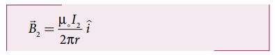 • A கடத்தியில் I1 மின்னோட்டத்தினல் r தொலைவில் ஏற்படும் நிகர காந்தப்புலம்