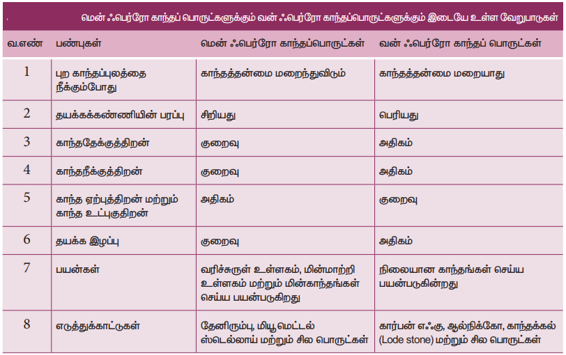 15. மென் மற்றும் வன் பெர்ரோ காந்தப் பொருள்களின் பண்புகளை ஒப்பிடுக.