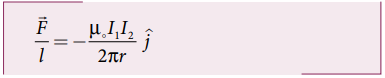 • A கடத்தியினால், B கடத்தியின் ஓரலகு நீளத்தில் செயல்படும் விசை