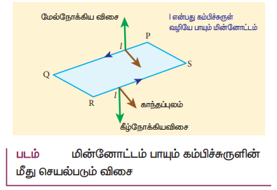 13. மின்னோட்டம் பாயும் இரு இணைக் கடத்திகளுக்கு இடையே உருவாகும் விசைக்கான கோவையைத் தருவி.