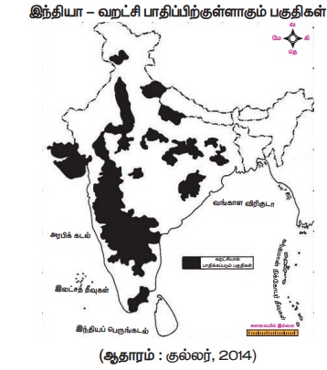 மழைப்பொழிவு 60 சென்டி மீட்டருக்கும் குறைவான மழை பெறும் பகுதிகள் இந்தியாவில் வறட்சிக்கு
