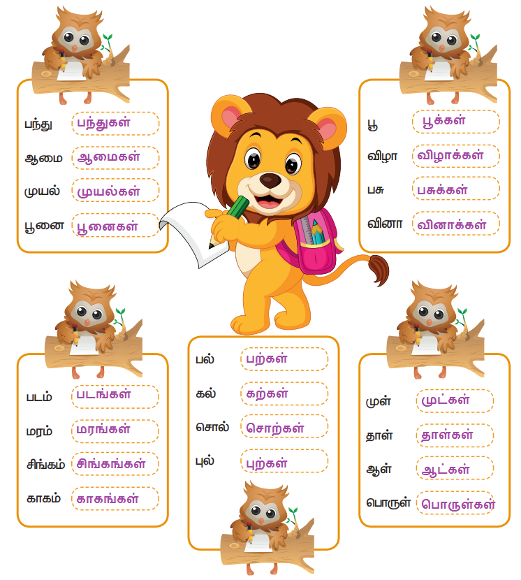 ஒருமைச் சொல்லுக்கு உரிய பன்மைச் சொல்லை எழுதுவோம்
