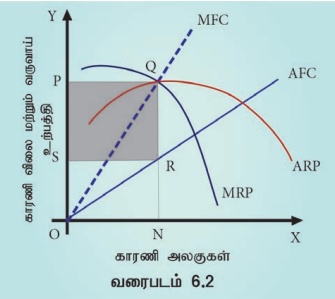 வரைபடம் 6.2ல் நிறைகுறைப் போட்டியில் காரணியின் விலை தீர்மானம் விளக்கப்பட்டுள்ளது. AFC என்பது காரணியின் சராசரி செலவுக்கோடு; காரணிகளுக்கு வழங்கப்பட்ட விலையை இது குறிப்பிடுகிறது. உற்பத்தியாளருக்கு காரணியின் தேவை அதிகரிக்கும்போது AFC யும் கூடுகிறது. AFC உயரும் போது MFC ஆனது AFC க்கு மேலே மேல்நோக்கிச் செல்லும் கோடாக அமைந்துள்ளது. MFC-என்பது காரணிகளுக்கு வழங்கப்பட்ட இறுதிநிலைச் செலவைக் குறிக்கிறது. Q என்ற புள்ளியில் MFC யும் MRP யும் சமநிலையில் உள்ளன.