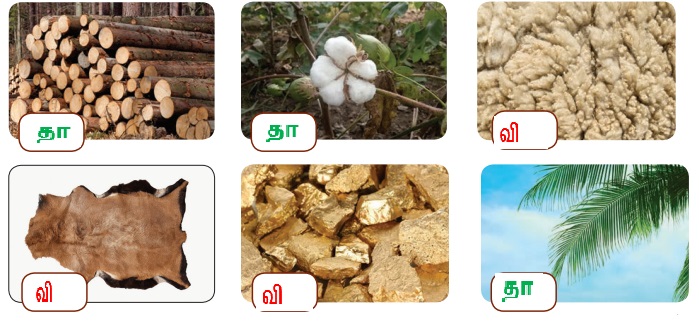 விலங்கு மூலங்களுக்கு 'வி' எனவும் தாவர மூலங்களுக்கு 'தா' எனவும் உலோக மூலங்களுக்கு 'உ' எனவும் எழுதுக.