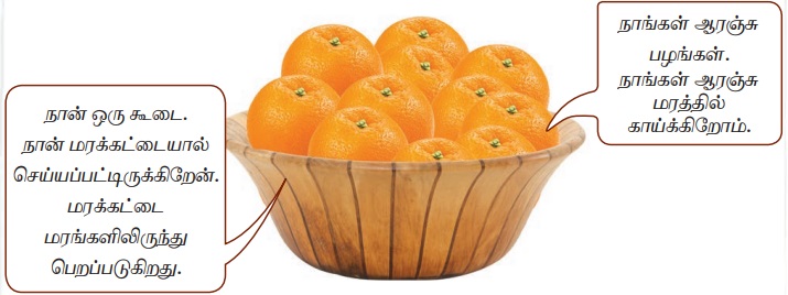 நாங்கள் ஆரஞ்சு பழங்கள். நாங்கள் ஆரஞ்சு மரத்தில் காய்க்கிறோம்.