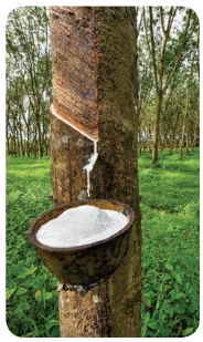 இரப்பர் மரத்திலிருந்து கிடைக்கும் பால் போன்ற பொருளைக் கொண்டு இரப்பர் தயாரிக்கப்படுகிறது.