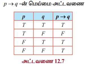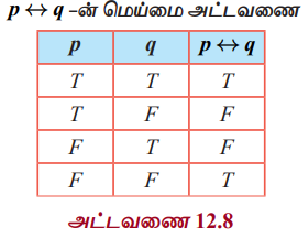 தனிநிலைக் கணிதம் | கணிதவியல் - கணித தர்க்கவியல் (Mathematical Logic) : தர்க்க இணைப்புகள் மற்றும் அதன் மெய்மை அட்டவணைகள் (Logical Connectives and their Truth Tables) | 12th Maths : UNIT 12 : Discrete Mathematics