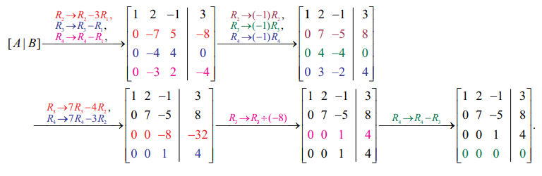 எனவே ρ(A) = 3 மற்றும் ρ ([A | B]) = 4. எனவே ρ(A) ≠ ρ ([A | B]).
