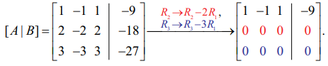 எனவே ρ(A) = ρ ([A | B]) = 1 < 3.