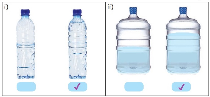 அதிக அளவு தண்ணீர் கொண்ட பாத்திரத்தை (✔) குறியிடுக.