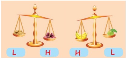 இலேசான பொருள்களைக் கொண்ட எடைத் தட்டு மேலே போகும்.