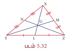 படத்தில், G ஆனது முக்கோணம் XYZ இன் நடுக்கோட்டு மையம் ஆகும்.