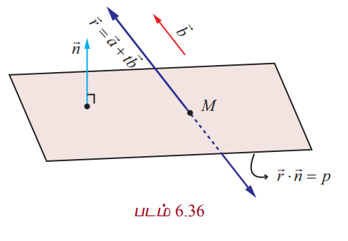 வரையறை, தேற்றம், நிரூபணம், எடுத்துக்காட்டு கணக்குகள் - ஒரு கோடும் ஒரு தளமும் சந்திக்கும் புள்ளி (Meeting Point of a Line and a Plane) | 12th Maths : UNIT 6 : Applications of Vector Algebra