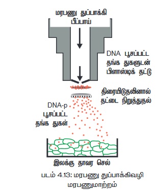 செய்யப்பட்ட அயல் DNA இலக்கு திசு அல்லது செல்களின் மீது துகள் துப்பாக்கியை (மரபணு
