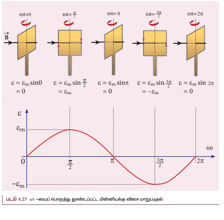 (wt) சைன் சார்பாக மாறுவதைத் தெரிந்து கொள்ளலாம். தூண்டப்படும் மின்னியக்கு விசை மற்றும்