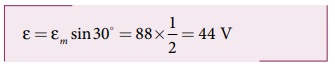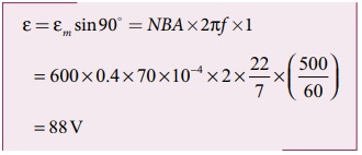90° சுழற்றப்பட்டால், sin wt = 1. எனவே தூண்டப்பட்ட மின்னியக்கு விசையின் பெரும மதிப்பு