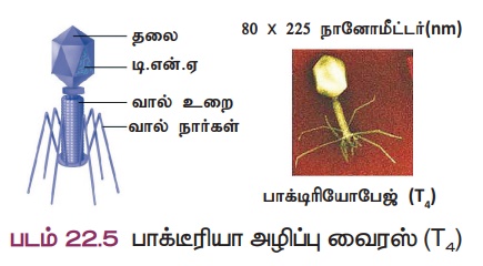 பாக்டீரியா வைரஸ் (பாக்டீரியோ ஃபேஜ்கள்): இவை பாக்டீரியாவினைத் தாக்கி பாதிப்பை உண்டாக்கும் வைரஸ்கள் ஆகும். எ.கா: பாக்டீரிய அழிப்பு வைரஸ். (T4)