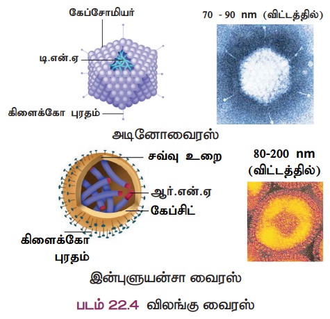 (ii) விலங்கு வைரஸ்கள்: இவ்வகை வைரஸ்கள் விலங்குகளைத் தாக்கி நோயுண்டாக்குகின்றன. எ.கா: அடினோ வைரஸ்,