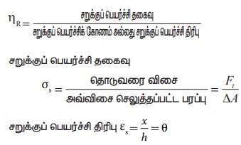 சறுக்குப் பெயர்ச்சித் தகைவிற்கும் சறுக்குப் பெயர்ச்சித் திரிபுக்கும் உள்ள விகிதம் விறைப்புக்குணகம் என வரையறுக்கப்படுகிறது.