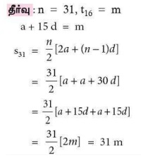 10. ஒரு கூட்டுத் தொடர்வரிசையில் 31 உறுப்புகள் உள்ளன. அதன் 16-வது உறுப்பு m எனில், அந்தக் கூட்டுத் தொடர்வரிசையில் உள்ள எல்லா உறுப்புகளின் கூடுதல்